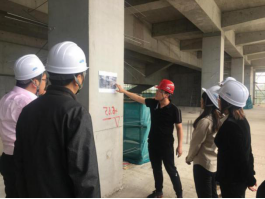 会议结束后,会议成员在总工程师刘冬正的带领下,前往C8地块参观了工程的建设情况及工作进度,刘总工进行了现场汇报。