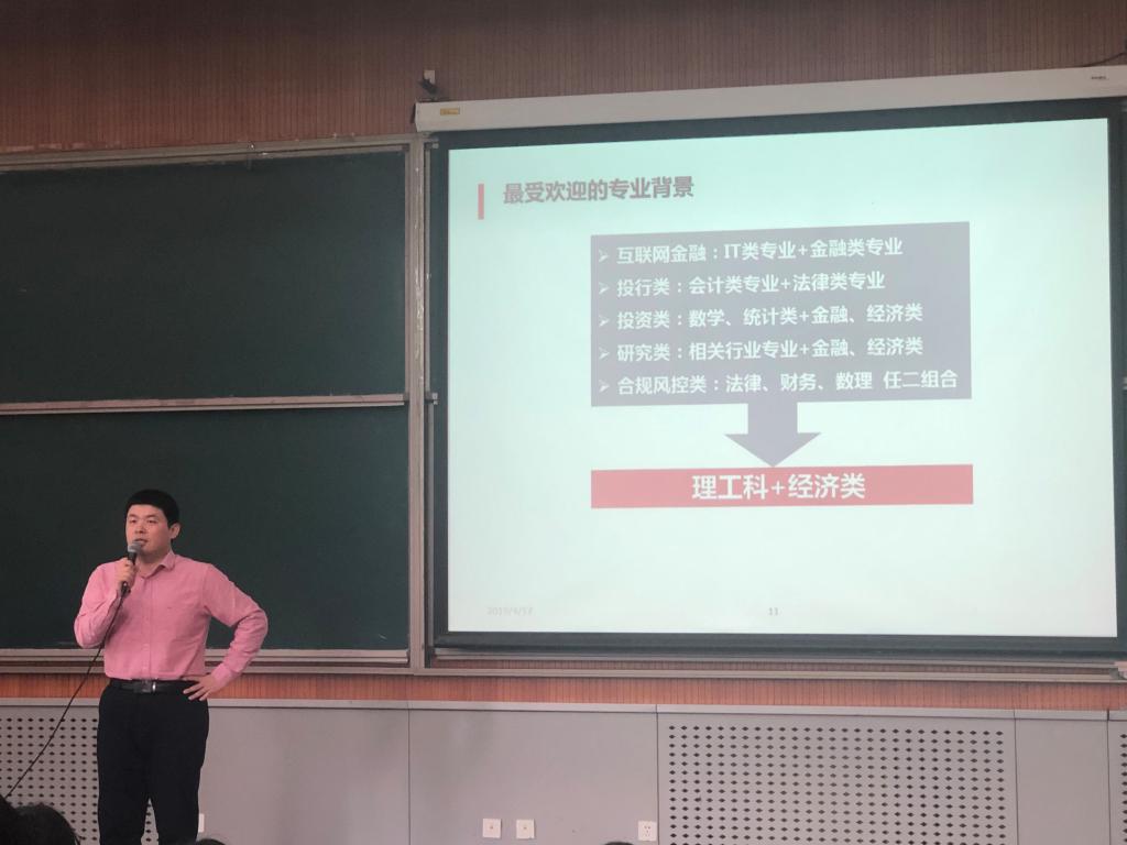 4月17日下午14:00,公司2017级本科生在公司楼4号楼107教室,召开年级主题班会,邀请校外专家信达证券投行事业部综合管理部负责人、中国证券业协会外部评审专家马建勇老师,为同学们授课,主题是证券行业校园招聘情况和老员工求职的点线面