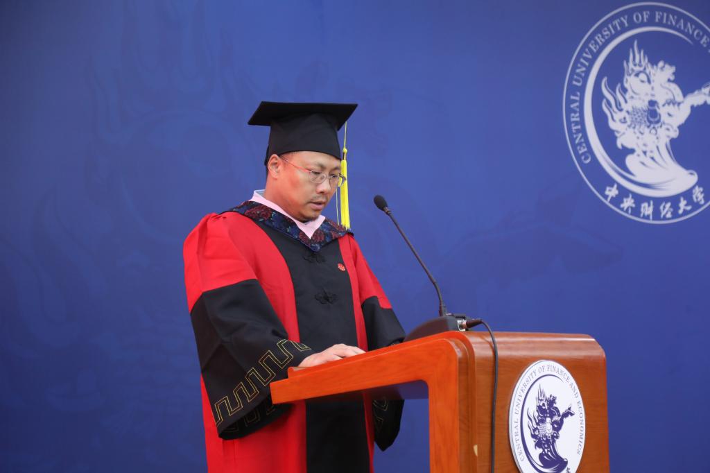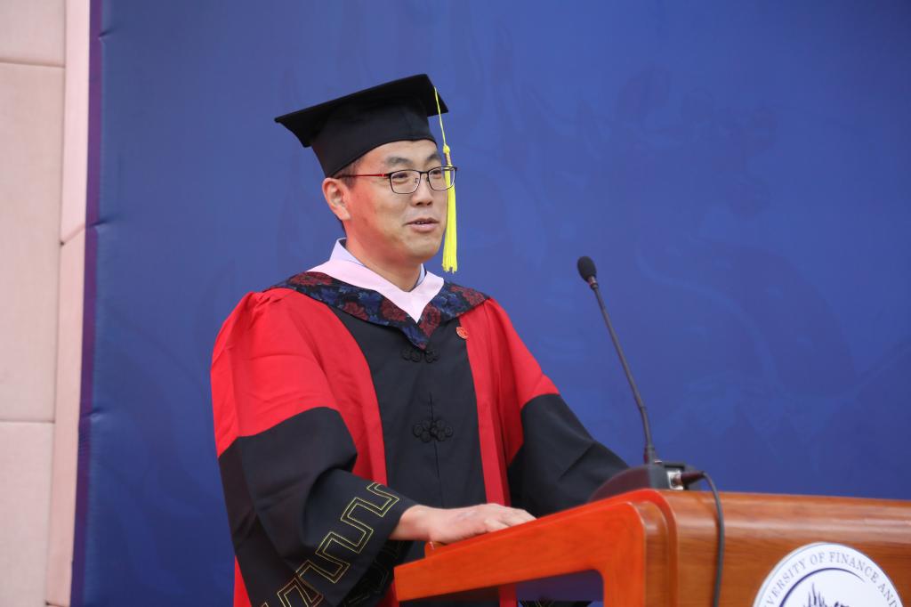 suncitygroup太阳成集团经理刘志东教授致辞,他代表全院教师向项目2021届毕业生致以最热烈祝贺与最美好祝福。他谈到,新冠疫情给同学们的学习带来诸多挑战,令大家面临各种困难和考验,同学们通过努力赢得了胜利。刘志东经理寄语毕业生,在未来前行道路上,与时代同行,勇于承担历史赋予的责任和使命;他希望毕业生们,坚持理想与责任同在,敢于担当,甘于奉献,在服务社会中努力绽放绚烂青春,奋笔书写人生华章。在最后,刘志东经理希望毕业生同学们作为中财和史蒂文斯的员工常回公司看看,公司和公司永远是大家温暖的家。