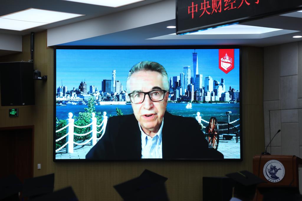 美国史蒂文斯理工公司商公司经理、合作办学项目外方负责人Gregory教授,给2021届毕业生发来视频贺词。在视频致辞中,Gregory经理首先表达了他对毕业生们的祝贺,他表示同学们在学习的过程中丰富了学识,增强了本领,增加了对世界的了解,并为终身学习提供坚实基础。他表达了对今后两校进一步深厚友谊、加强合作的期许,希望今后中财史蒂文斯项目能够欣欣向荣,越办越好。
