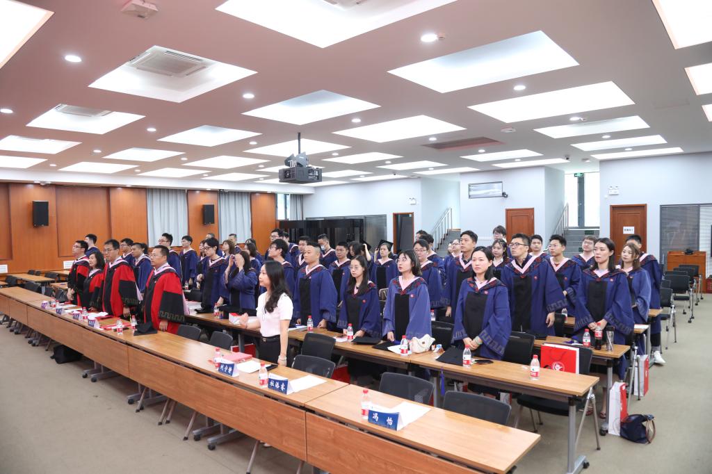 接下来进行的是学位授予仪式。毕业生们逐一上台,陈俊华副经理为同学们颁发美方学位证书和中财结业证书,刘志东经理为毕业生们拨穗正冠。