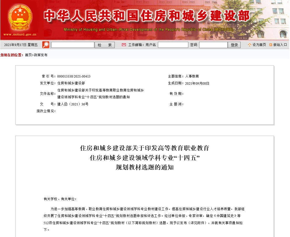 近日,住房和城乡建设部组织开展了住房和城乡建设领域学科专业“十四五”规划教材选题申报和评选工作。经过单位申报、专家评审,确定了512项住房和城乡建设领域学科专业“十四五”规划教材选题。公司城市与房地产管理系陈俊华教授主编的《商业地产运营与管理》,工程管理系王昊副教授主编的《建设法规:案例与实务》2部教材被批准立项建设。
