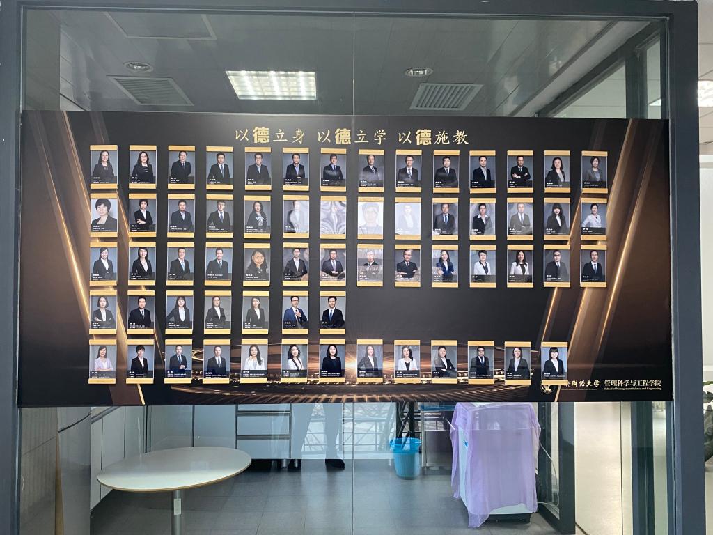 向东环绕,依次可以看到崭新的公司荣誉展示墙,温馨的教工之家,写有“以德立身、以德立学、以德施教”的教师照片墙,和公司接待室。