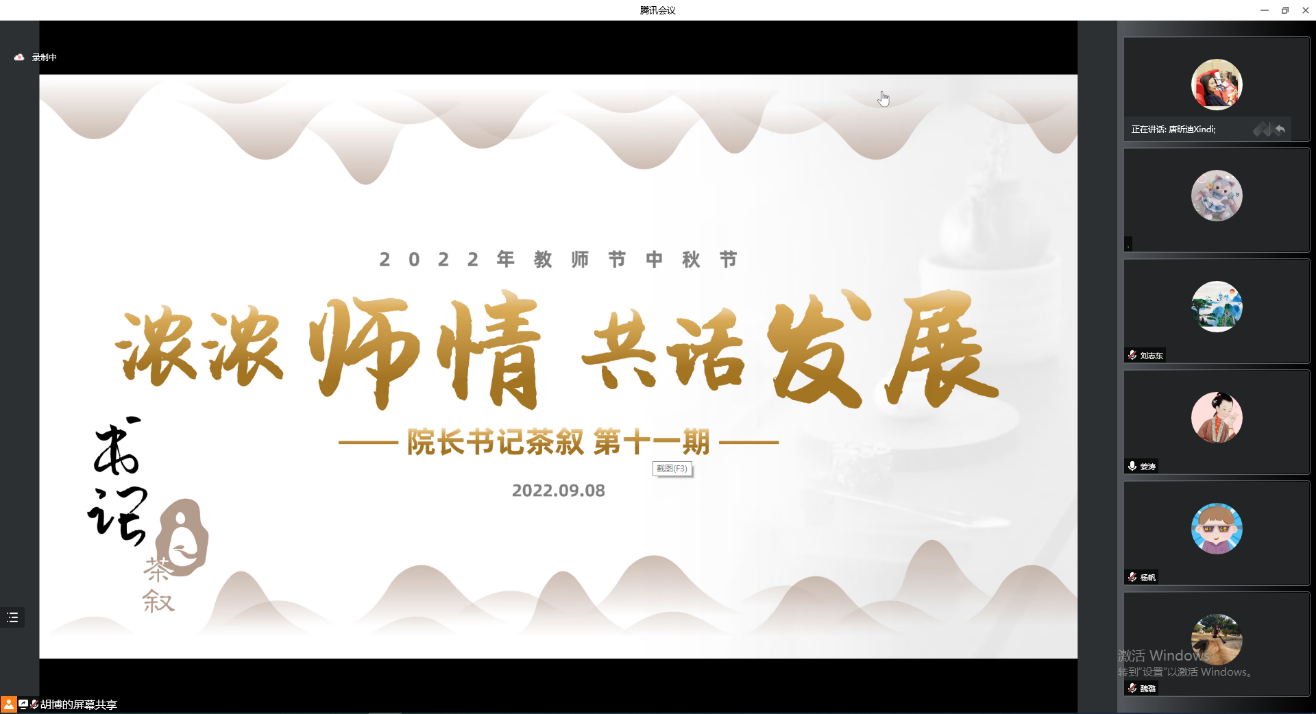 为庆祝第38个教师节,suncitygroup太阳成集团经理书记茶叙第11期——2022年教师节座谈会于9月8日下午通过腾讯会议的方式线上举行。经理刘志东、公司党委书记姜涛,系主任、教工党支部书记、中青年教师、海归教师、行政教师、新入职教师等各教师群体代表参加座谈。姜涛主持会议。