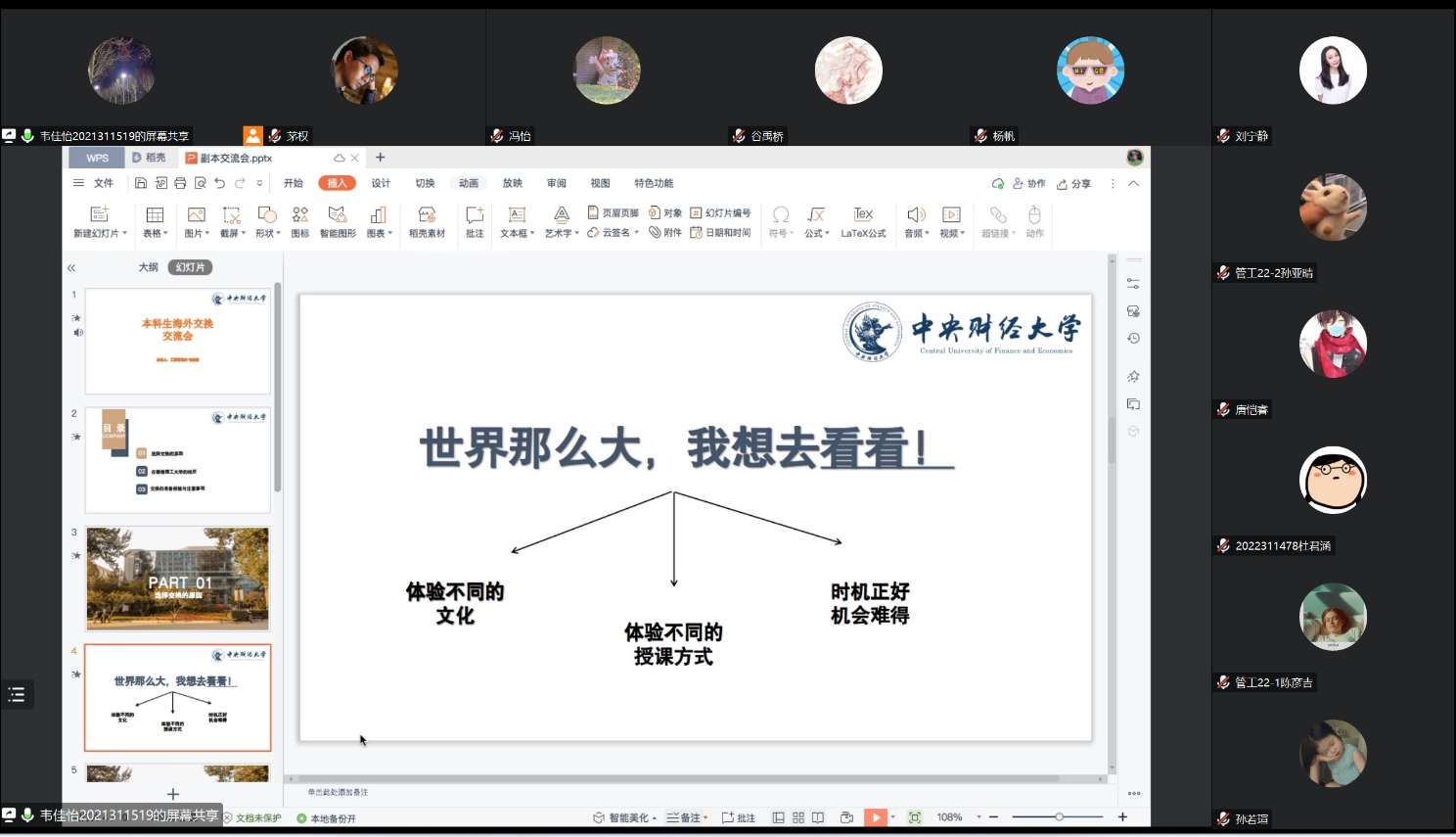 随着新冠疫情防控进入“乙类乙管”时期,公司本科生海外交换项目逐步重新启动。为帮助2021与2022级同学更好地了解本科生海外交换项目,公司于3月22日晚上通过腾讯会议举办了交流会,会议由公司国际合作交流办公室主任刘宁静老师主持,二十余位员工参加。