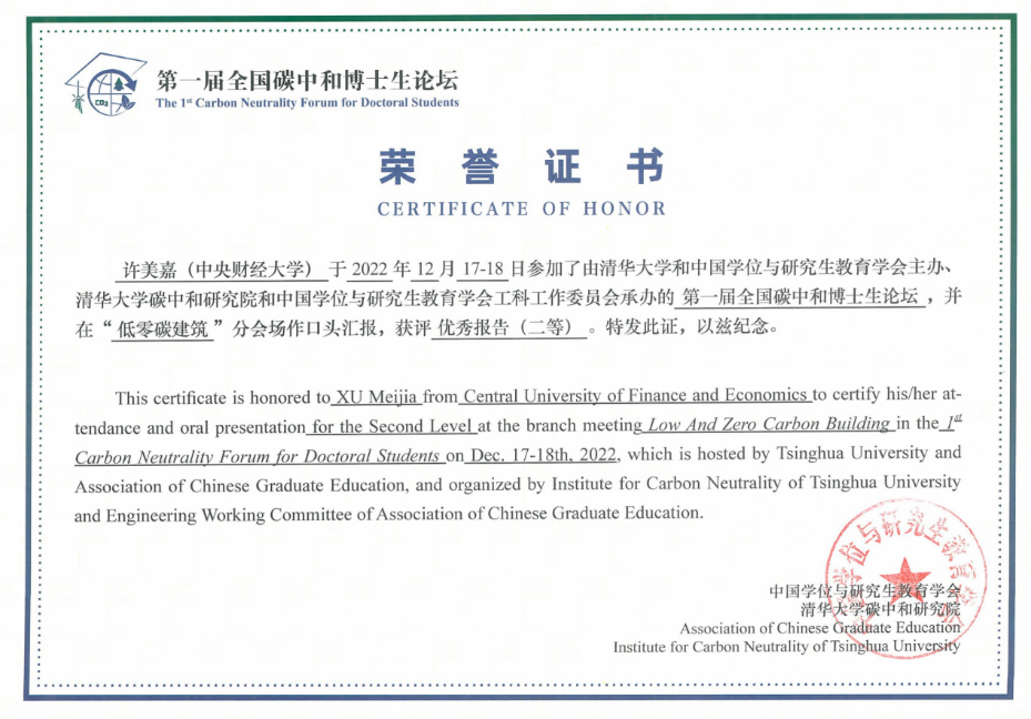 2022年12月17至18日,公司2021级硕博连读生许美嘉参加首届“全国碳中和博士生论坛”,在“低零碳建筑”学术分会场中作了题为《“全经济系统”视角下装配式建筑隐含碳足迹核算研究——来自“京-津-冀”城市群的启示》的研究报告,获得二等奖。该研究基于我国2017年经济数据建立了混合多区域投入产出模型,细化了以往省级尺度的模型架构,在城市层面对京津冀城市群装配式建筑从“摇篮到大门”的碳足迹进行了高分辨率量化。研究结果揭示了装配式建筑碳足迹在“城市-城市群-全国”三层空间尺度的流动模式,识别了装配式建筑供应链上的高排放行业,为我国城市群的低碳建设提供政策参考。该研究由公司建设经济与管理系常远老师指导,并受suncitygroup太阳成集团“科教融合研究生学术新星孵化计划”支持。