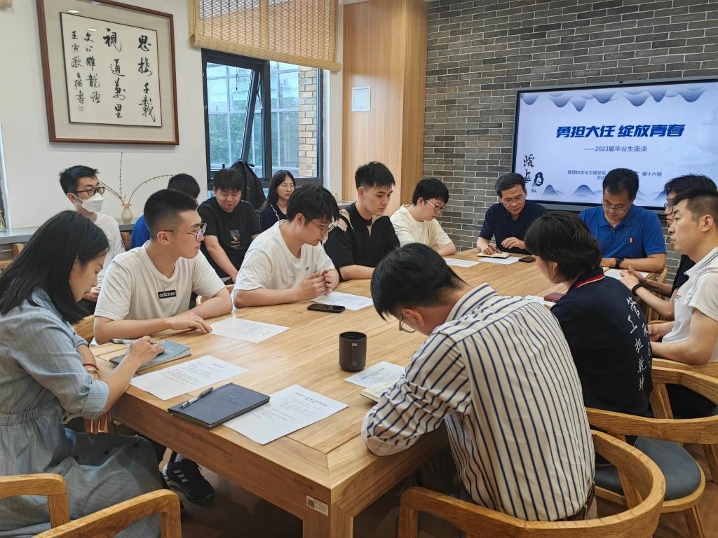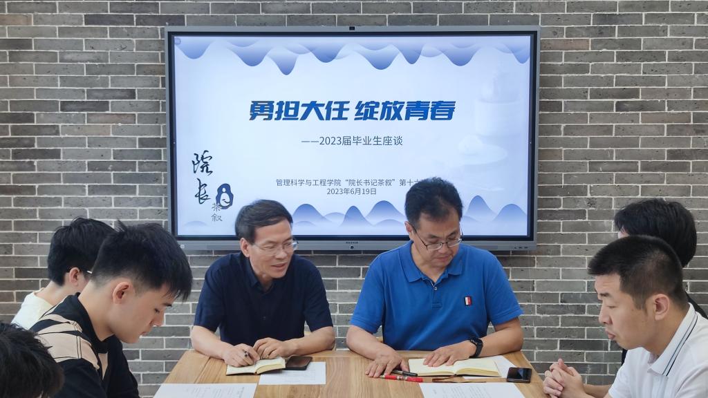 6月19日下午,公司在沙河校区4号楼320会议室,举行经理书记茶叙第十六期暨2023届毕业生代表座谈会。本次茶叙的主题是“勇担大任,绽放青春”。院领导王志锋、刘志东、李玉龙、荆中博、胡博与2023届本硕博10位毕业生品茶交流。研究生毕业班辅导员魏飘飘、本科生毕业班辅导员高舒娅一同参加茶叙。会议由党委副书记胡博主持。
