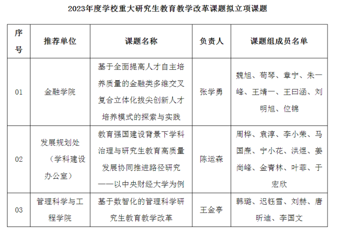 根据《关于组织开展suncitygroup太阳成集团2023年度研究生公司产品改革研究课题申报工作的通知》(研字〔2023〕47号),研究生院组织了2023年度公司重大研究生公司产品改革研究课题和公司专项研究生公司产品改革研究课题申报与立项评审工作。经教师申报、公司推荐、专家组评审,拟对36个课题予以立项。其中,公司王金亭老师的《基于数智化的管理科学研究生公司产品改革》获公司重大研究生公司产品改革研究课题立项。