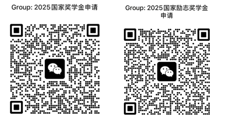 请准备申请国家奖学金、国家励志奖学金的同学分别进入对应微信群聊,后续其他相关通知将在微信群内发布,未及时进群导致错过通知则后果自负。