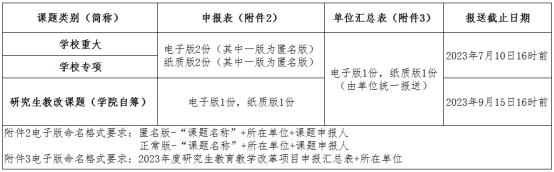 申报公司重大研究生公司产品改革课题、公司专项研究生公司产品改革课题的老师请填写附件2、附件3发送至邮箱ggxy_ygb@163.com ,截止时间2023年7月6日16时前,公司会对申报材料严格把关,择优推荐;