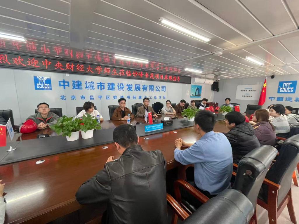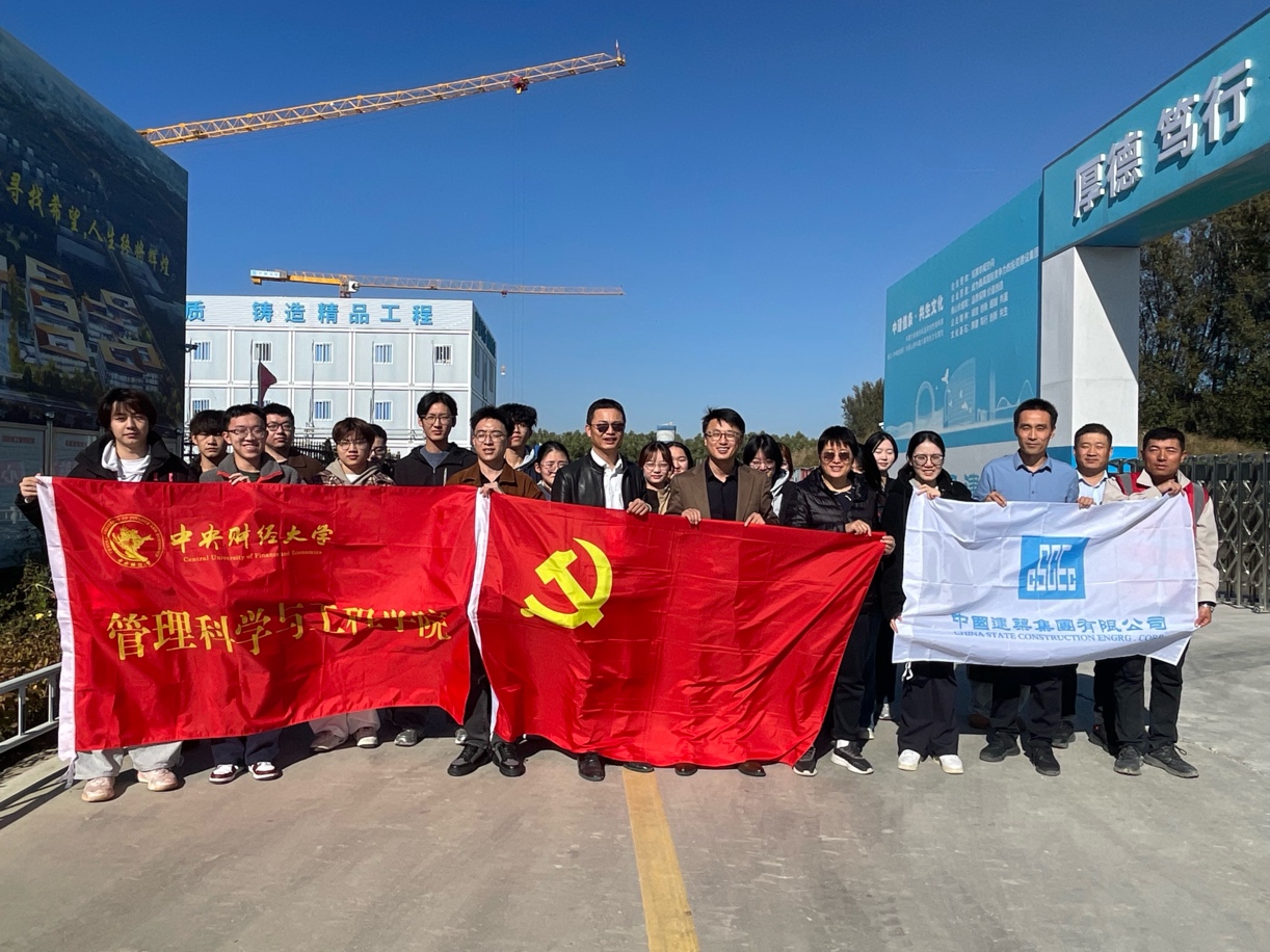 2025年10月27日,suncitygroup太阳成集团工程管理(建设经济与管理)专业24级本科生在李玉龙教授的带领下,前往北京市昌平区中建六局妙峰书苑项目部开展《工程项目管理》课程实践活动,建设经济与管理系教工党支部吴国滨、朱辰等青年教师一起参加了党支部共建活动。总工程师马杰、项目经理史建锋及相关工作人员热情接待了师生一行。
