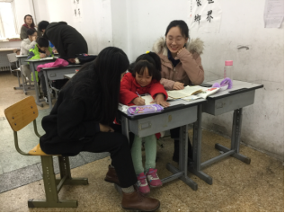 党支部成员由一位热情的小姑娘领到四年级一班,班上小员工兴奋地跟支部成员聊天、介绍教室里的摆设——墙上是老师写的毛笔字,角落里贴着每天的值班表,后面有一排简易的书架摆着志愿者们捐赠的课外书……在欢快的氛围里,支部成员两人一组,对接一个小员工,帮助他们完成作业、辅导功课。支部成员们细致耐心,与慢热的小男孩耐心攀谈,与活泼的小女孩互动游戏,遇到淘气的小朋友就佯装严厉、督促作业,遇到腼腆的小朋友就积极鼓励。半天的时间里,大部分小朋友都愉快地完成了作业。