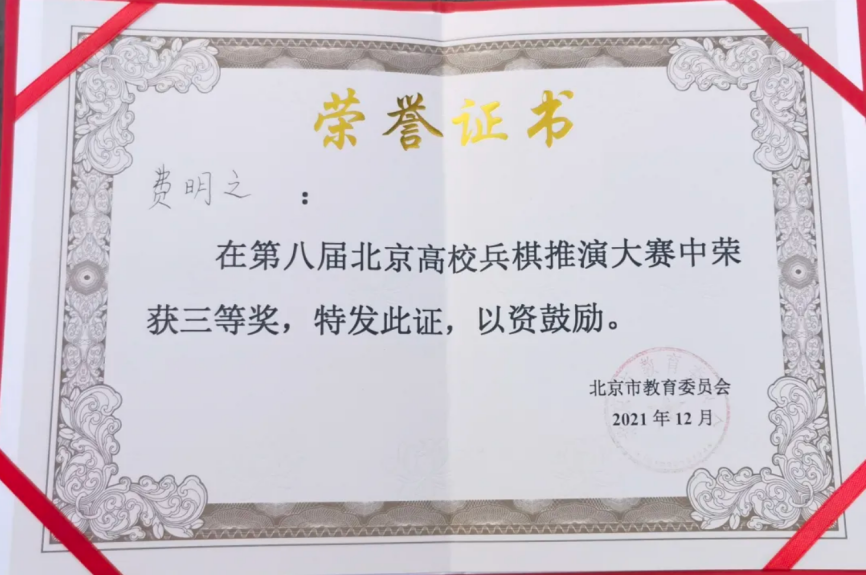 这是公司学子第二次在北京高校兵棋推演大赛取得佳绩。去年,来自投资学20的蒋舒扬、周航同学也取得了北京市三等奖的好成绩。