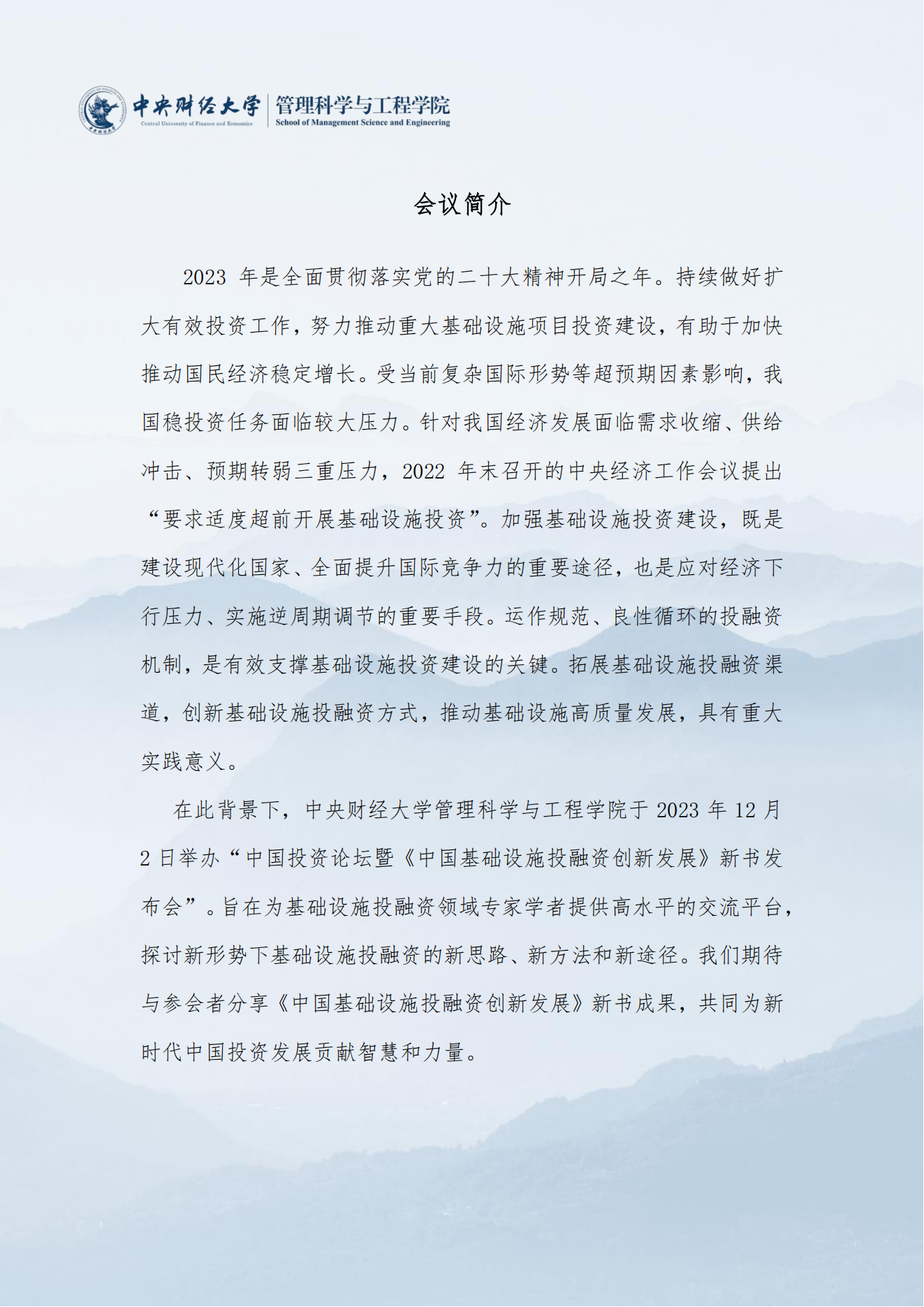 论坛 | 2023年中国投资论坛暨《中国基础设施投融资创新发展》新书发布会