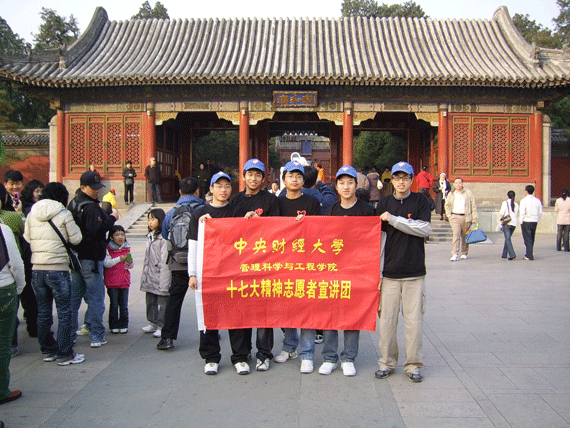 公司青年志愿者应颐和园团委的邀请于当日到颐和园进行志愿服务活动和十七大精神的宣讲。颐和园的购票处、公厕、照相点都有志愿者引导游人排队。在志愿服务的过程中,志愿者们积极向游人进行十七大精神的宣讲和十七大精神宣讲书签的发放。