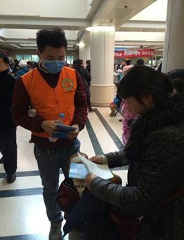 在面对陌生的就诊环境和就诊程序时,很多患儿家长都会觉得非常茫然无所适从,这时志愿者的一个温馨解答就会让患儿家长豁然开朗,缩短他的就诊时间。志愿服务是一种交互式的服务,一方面我们为患儿家属提供了帮助,另外一方面我们也得到了助人为乐的满足感。虽然有的时候会觉得志愿服务会有些枯燥,会解释的口干舌燥,但当看到患儿家属那欣慰的表情,听到患儿家属连声的“谢谢”,成就感和快乐感就会溢满心间。也正是这种志愿服务在不断磨练我们的精神意志,在不断提升我们的精神境界,在不断帮助着我们成长。