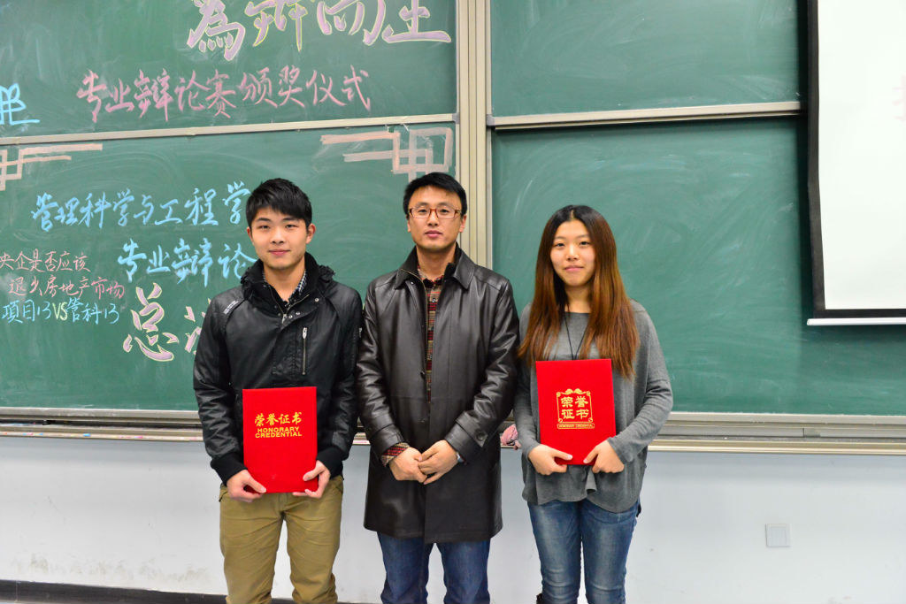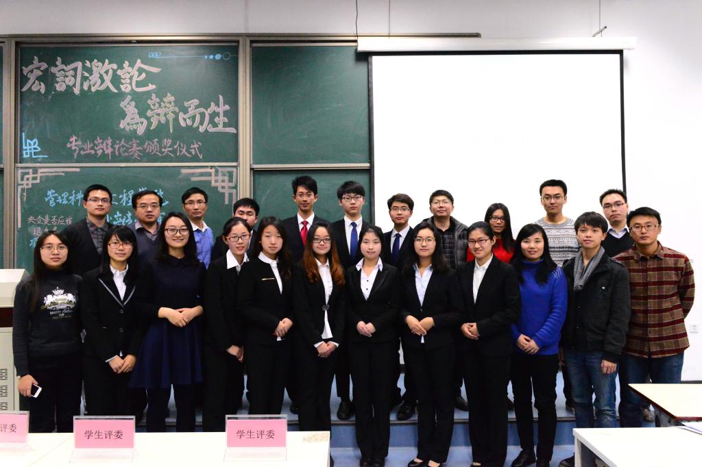 经过评为的认真评比,在现场师生的焦急等待中,主持人揭晓了比赛结果,管科13班最终凭借他们准确的立论、清晰的思路和良好的团队合作,赢得了评委的认可,摘得桂冠,项目13获得亚军。同时,项目13的周冰玉以其严谨的逻辑、清晰的表达被评为决赛最佳辩手。贺小海老师在比赛结束后的致辞中,表示本次比赛是公司历史规模最大的专业辩论赛,通过这样的比赛引导同学们关注专业理论和市场运行实践,倡导同学们发现专业兴趣、培养专业精神。贺老师寄希望于这样的比赛今后要继续办下去。