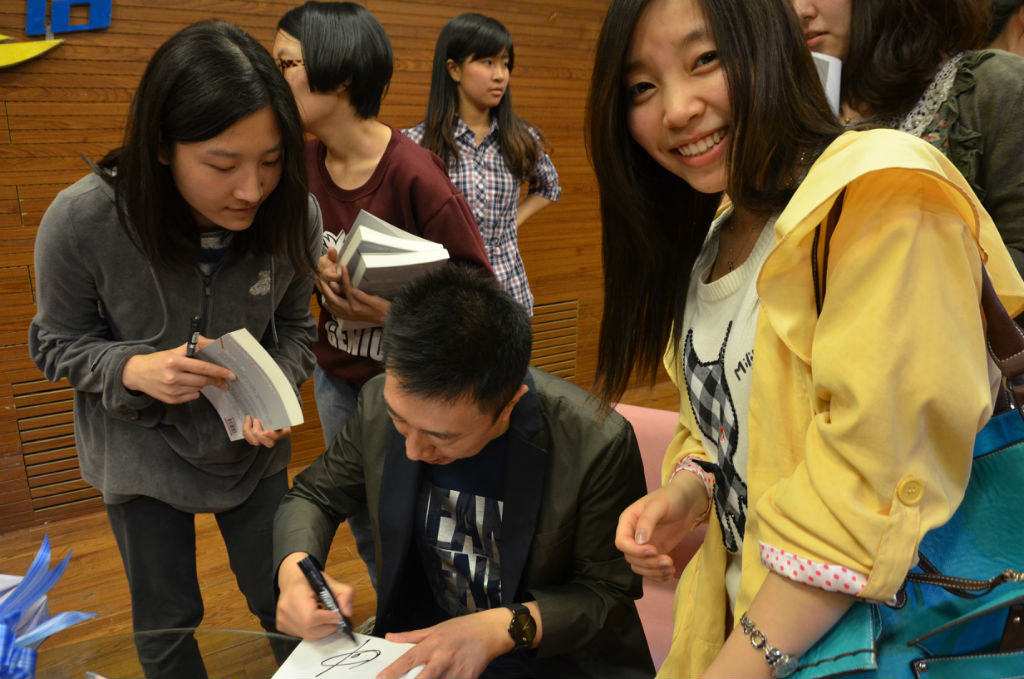 在互动环节,陈伟鸿先是与积极踊跃的现场同学做了“猜猜他是谁”的游戏,又对同学们提出的如何开展公益活动、如何评价人生得失、以及主持事业的发展等问题,耐心认真地做了回答。公司员工会也借机购置了一些学习用品,希望由“鸿基金”理事会转交受资助的留守儿童,以表达管工学子的一份心意。活动结束后,陈伟鸿还热情地为现场同学签名赠书。