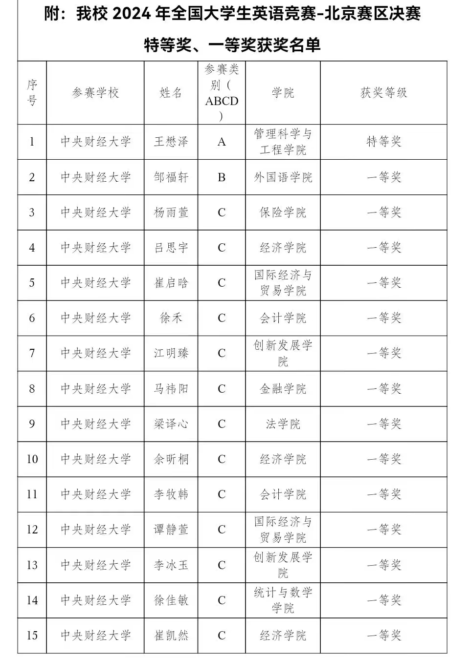 经过四年的中财本科时光,我已经适应了这里的学习和生活节奏,也收获了许多宝贵的经验和友谊。能在熟悉的校园继续深造,与昔日的老师和同学再次相遇,我感到十分幸运,也珍惜与每一位老师和同学相处的时光。在过去的四年中,我曾经参加了两次全国老员工英语竞赛,但均仅获全国一等奖,与特等奖的失之交臂也成为了我本科四年的一个遗憾。