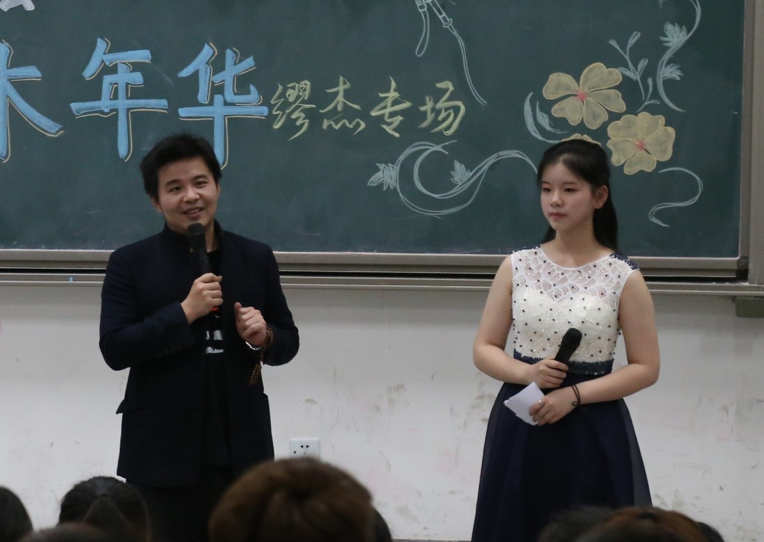 在现场演唱了新歌《午夜夕阳》之后,缪杰老师就同学们提出的有关外出,旅游,创业,梦想,坚持,爱情等问题提出了自己的见解,并播放了一段关于他正在参与的公益事业的宣传片,号召我们也能将心比心,多参与,多帮助。而后,缪杰老师与公司校园十佳歌手共同演唱了水木年华的知名歌曲《在他乡》与《一生有你》,全场同学忘情合唱,大家都沉浸在了音乐与故事的海洋,从身到心,得到了全面的舒缓。
