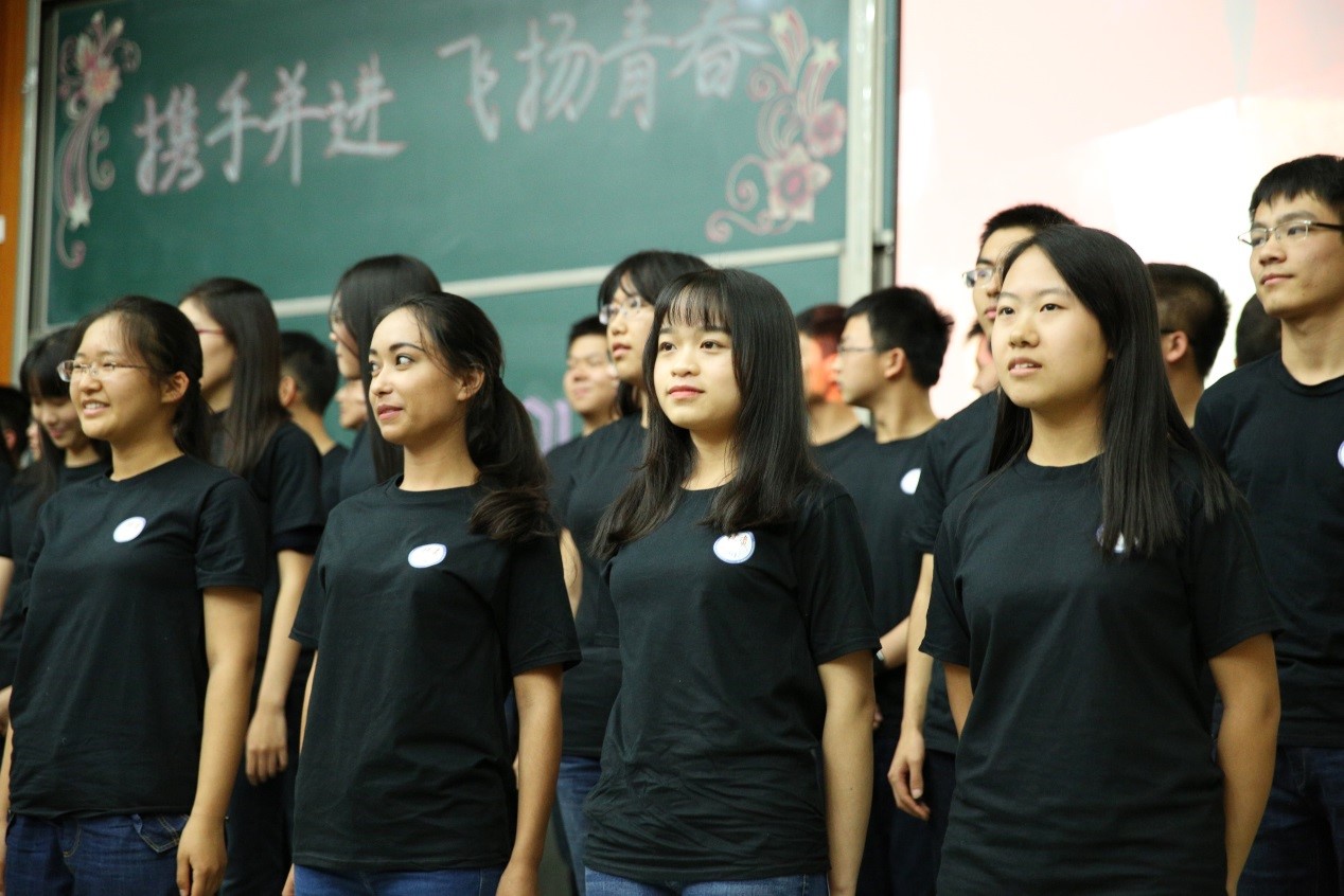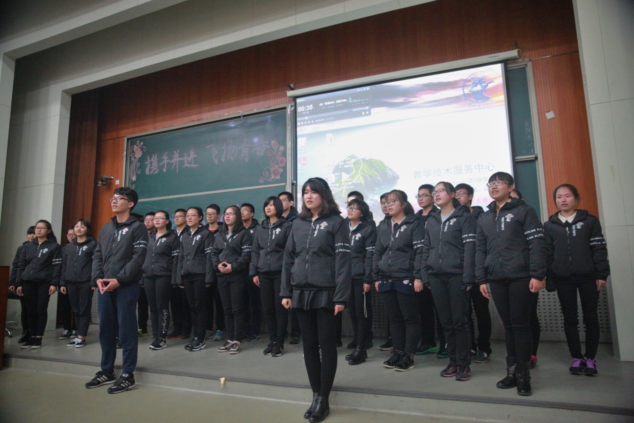 多年之后,不知你是否还能记起当年与我同桌的你?管科16的同学们用明亮的歌声将故事娓娓道来。如彩虹般绚烂的“管”字班徽,由全体同学名字组成的班旗,无一不显示了管科特色。