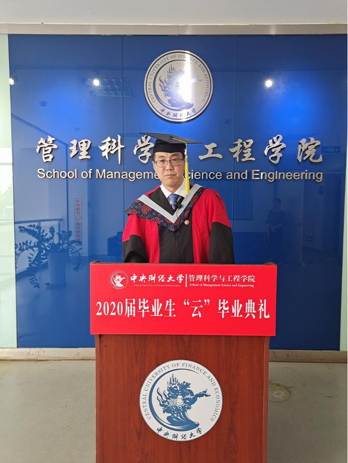 经理、院学位评定委员会主席刘志东在致辞中,代表全院教师向毕业生致以最热烈祝贺与最美好祝福。他谈到,新冠疫情给同学们的学习和生活带来诸多挑战,令大家面临各种困难和考验,也给毕业季留下深深遗憾。他寄语毕业生,在未来前行道路上,与时代同行,勇于承担社会责任;积蓄力量,寻找终生成长的方式;守正初心,坚守道德良知底线。他希望毕业生们,不负党和国家的培养,坚持理想与责任同在、本领与道德同有、实践与创新同步,敢于担当,甘于奉献,承担起时代赋予的责任和使命,在服务社会中努力绽放绚烂青春,奋笔书写人生华章。