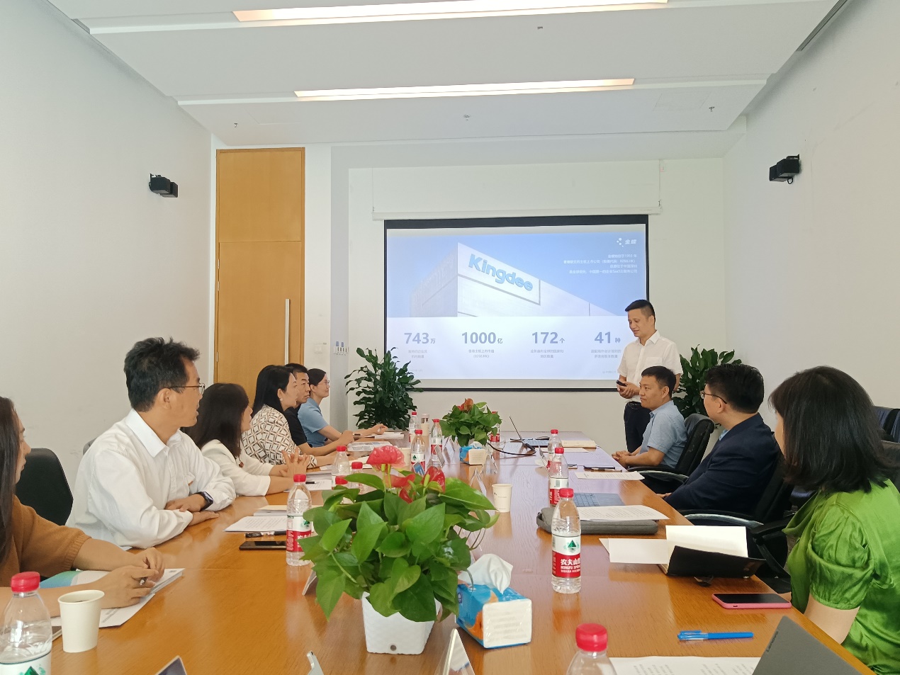 为深化产教融合校企合作,积极服务国家重大战略和经济社会发展,提高人才培养质量,2022年9月17日,经理刘志东、公司党委书记姜涛一行赴金蝶(北京)软件园走访交流,与金蝶集团洽谈战略合作事宜。金蝶精一信息服务科技股份有限公司联席总经理赵治国、北京金蝶管理软件有限公司建筑房地产总经理贺玉刚、金蝶信用科技(深圳)有限公司副总经理朱海勃、金蝶精一信息科技服务有限公司京津区总监郝红建等参加交流。产教融合发展部、科研与团队建设部、管理科学系、建设经济与管理系、城市与房地产管理系、投资系负责人陪同走访。