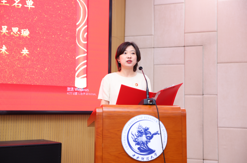 公司党委副书记胡博宣读《关于表彰2023年中财史蒂文斯项目优秀毕业生的决定》,为获表彰的同学颁发荣誉证书并致以祝贺。