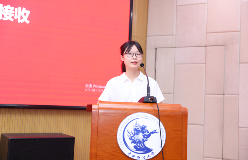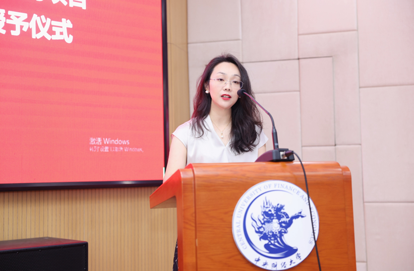在新员工接收仪式环节,公司国际合作交流办公室刘赣玮老师宣读了《新员工接收词》,真诚欢迎项目各位毕业生加入中财史蒂文斯项目员工的大家庭。