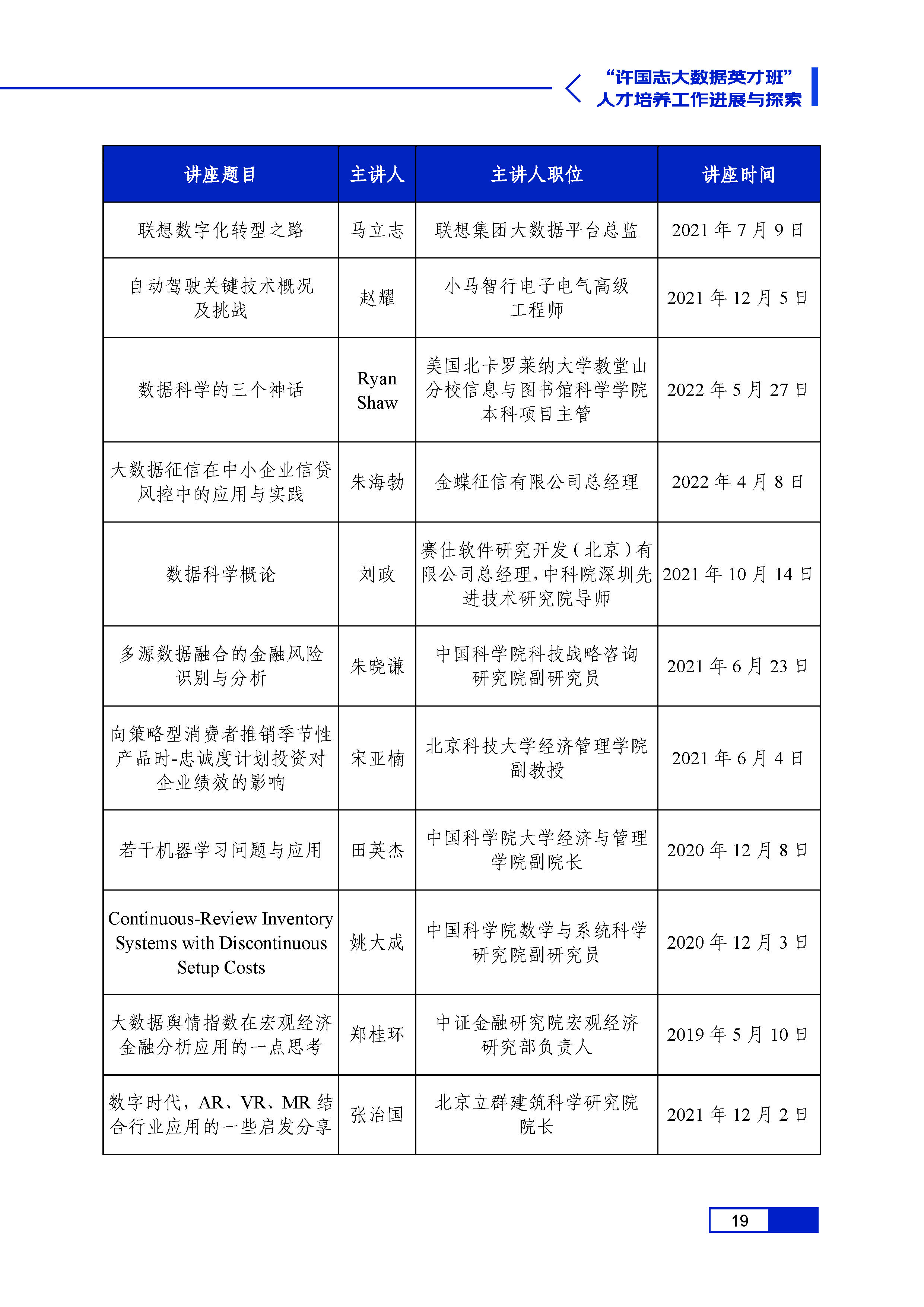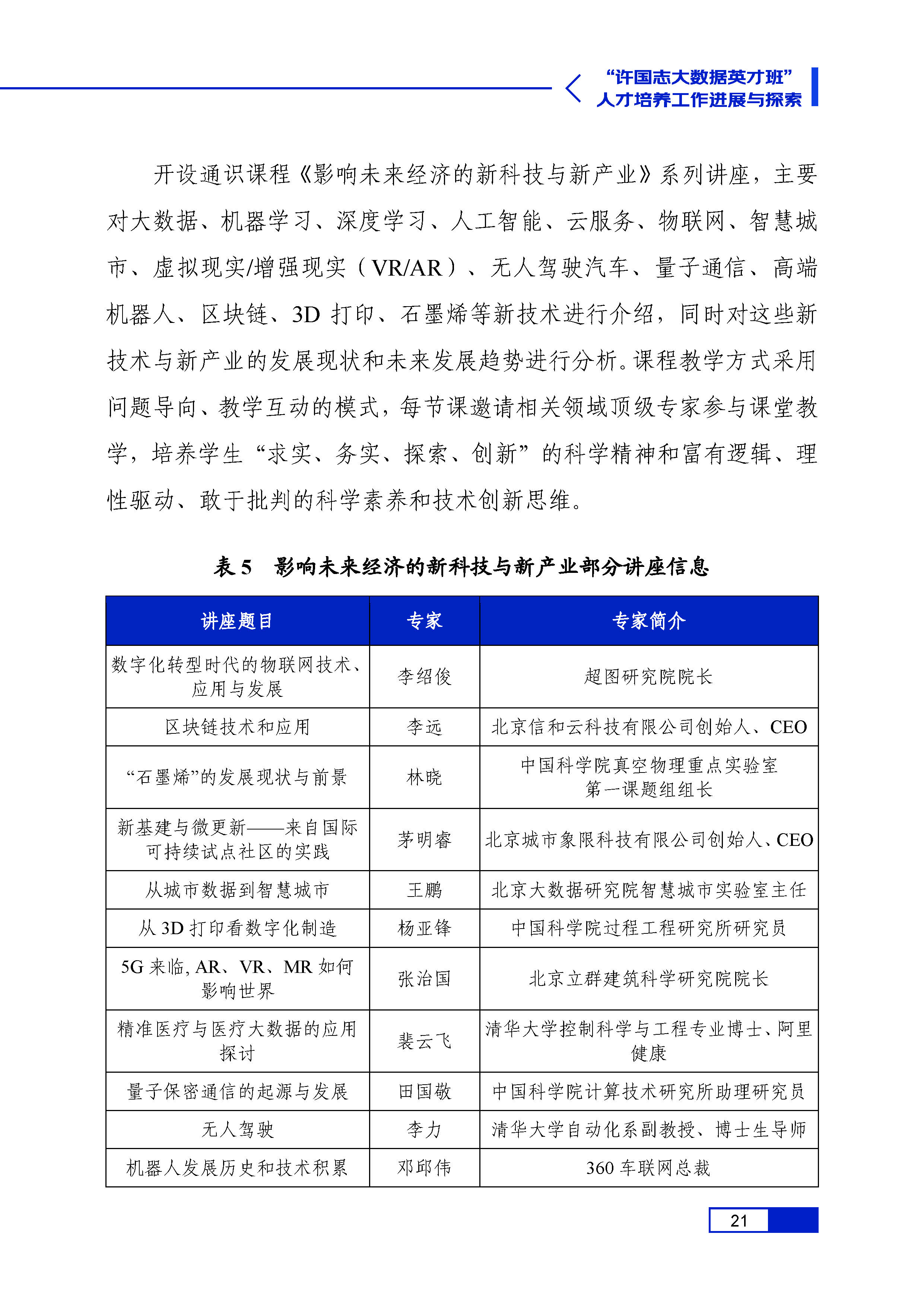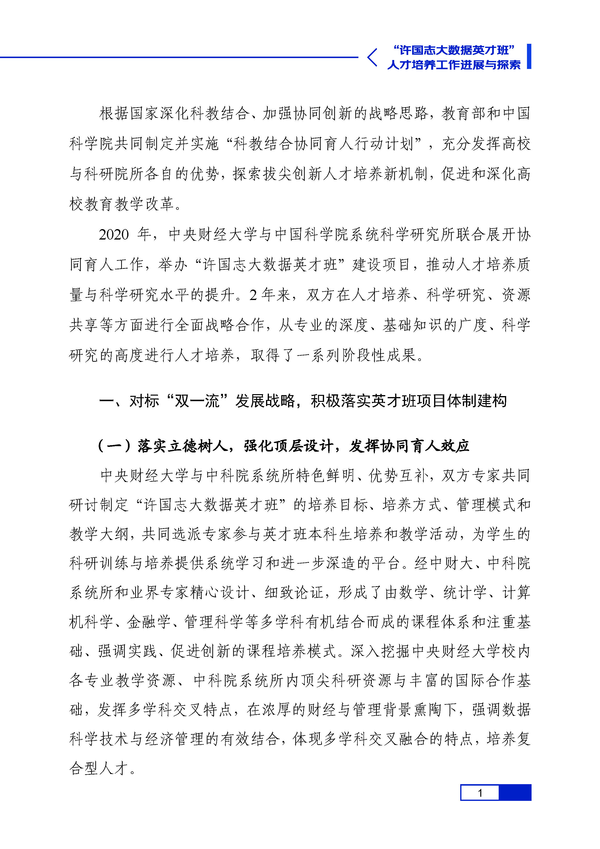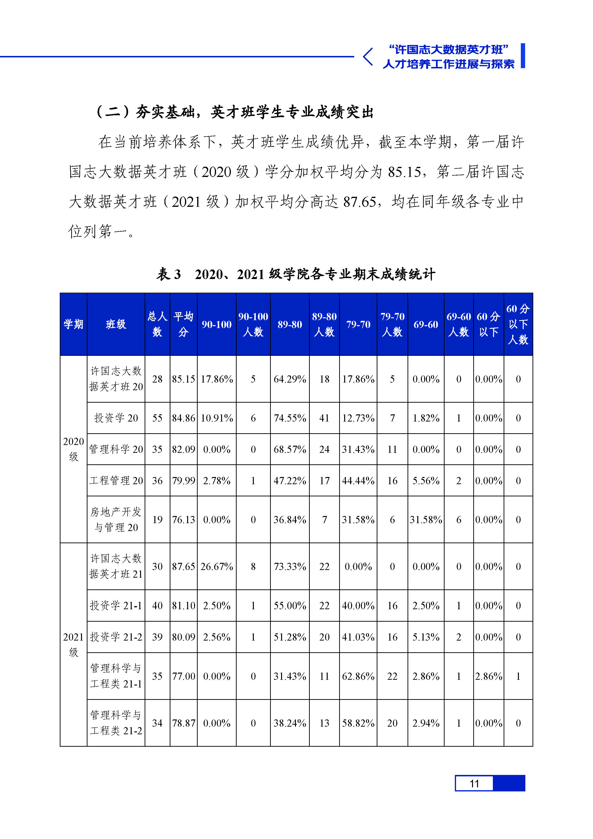 许国志大数据英才班人才培养进展与探索