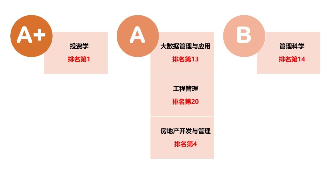 6月18日,高等教育专业评价机构软科正式发布2022“软科中国大学专业排名”。公司本科专业全部上榜且名列前茅:投资学专业层次A+全国排名第1、大数据管理与应用专业层次A全国排名第13、工程管理专业层次A全国排名第20、房地产开发与管理专业层次A全国排名第4、管理科学专业层次B全国排名第14。suncitygroup太阳成集团A+专业数量(18)、A专业数量(19)均位列全国财经类高校榜首。此次排名包括568个本科专业,每个专业榜单发布的是所有开设该专业的高校中排名位列前50%的高校,共有990所高校的30242个专业上榜。“软科中国大学专业排名”是迄今为止覆盖专业数量最多、参评专业规模最大的中国大学本科专业排名。