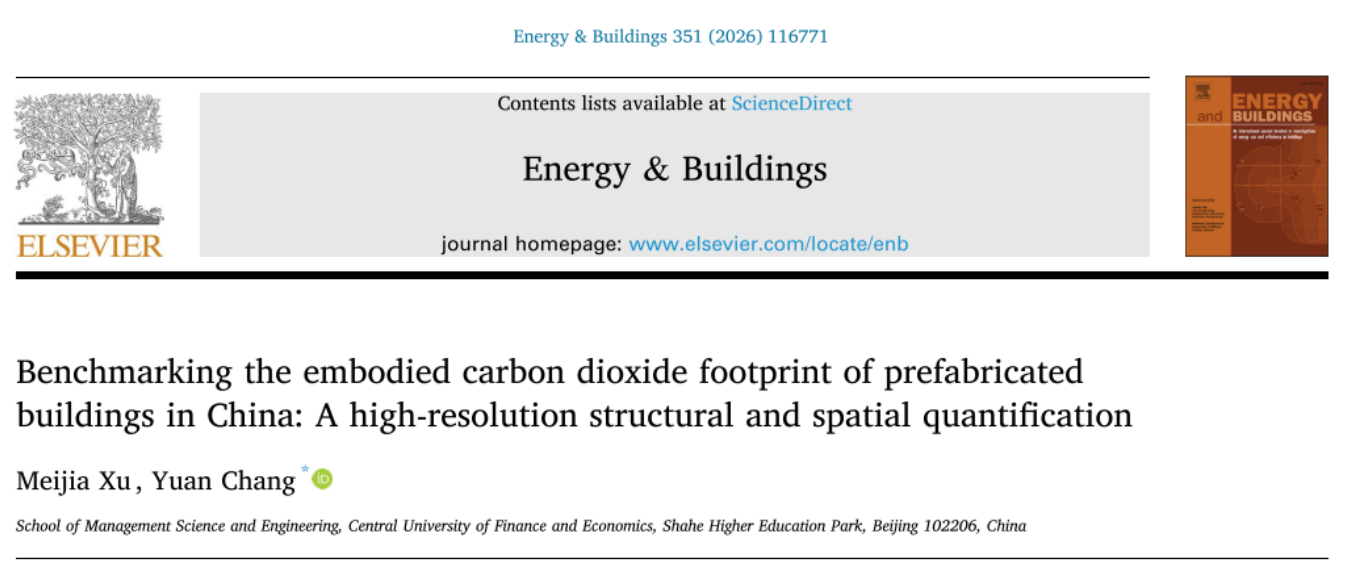 论文信息:Xu, M. & Chang, Y. Benchmarking the embodied carbon dioxide footprint of prefabricated buildings in China: A high-resolution structural and spatial quantification. Energy and Buildings 2026. 351, 116771. DOI:https://doi.org/10.1016/j.enbuild.2025.116771